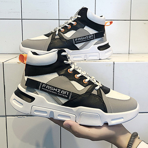 秋季透气老爹鞋男鞋韩版潮流高帮帆布板鞋男士休闲鞋男增高运动鞋