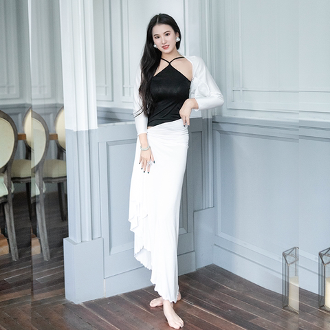悦梦风璐肚皮舞练功服秋冬新款保暖小坎肩披风长裙性感三件套装