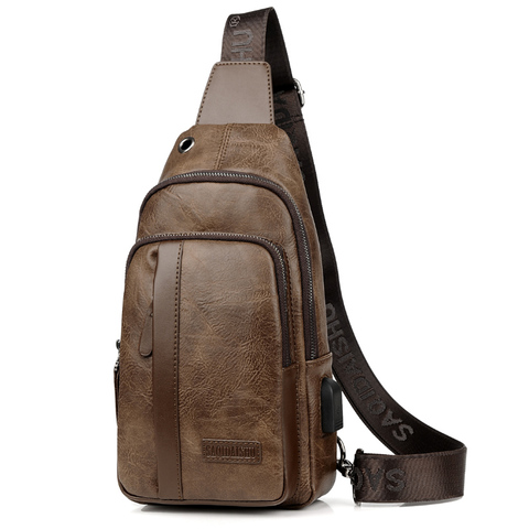 正品袋鼠usb时尚斜肩男士胸包