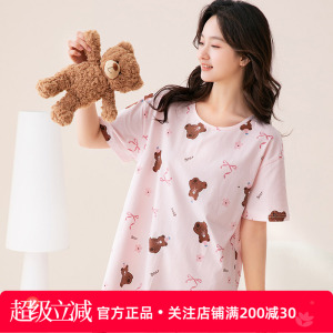 芬腾睡裙女夏季纯棉亲肤可外穿女士短袖夏天甜美睡衣女款2026新款