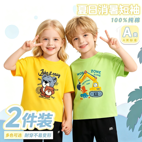 短袖男童女童纯棉上衣春季新款吸汗时尚T恤内搭潮流中大童