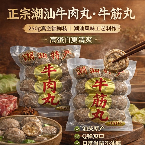 潮汕牛肉丸250g正宗新鲜冷冻牛筋丸火锅麻辣烫煮汤牛丸手打潮汕