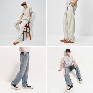 森马凉感宽松直筒森柔牛仔长裤男