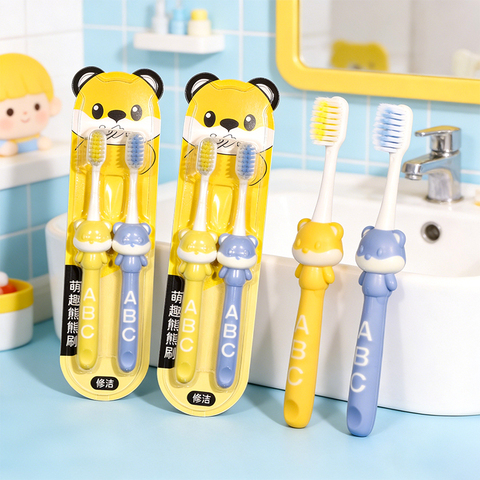 修洁儿童软毛牙刷3-6岁换牙期乳牙刷小熊卡通造型2支装