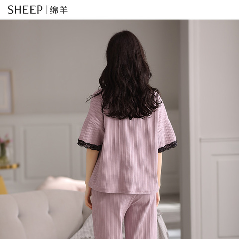 纯棉睡衣女2022年新款夏季短袖七分裤全棉大码家居服套装可外穿夏