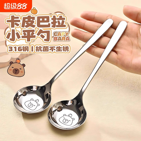 不锈钢圆头大汤勺食品级勺子卡通饭勺调羹平底深汤匙小勺子