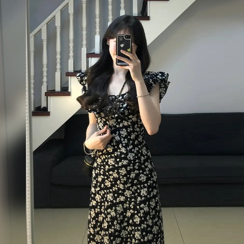 QY 2026夏季法式绝美V领碎花连衣裙女气质收腰长裙茶歇裙