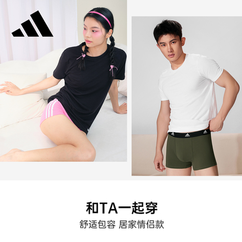 Adidas/阿迪达斯圆领短袖T恤男夏季亲肤舒适柔软宽松情侣家居服女