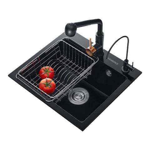 悍高厨房石英石水槽黑色洗菜