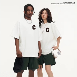 T宽松时尚印花短袖t恤男女情侣夏季休闲上衣0402-2纯白白色黑色