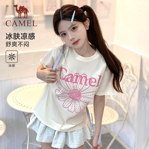 骆驼冰皮T神小雏菊T恤短袖2026夏季新款棉感宽松休闲韩系圆领上衣