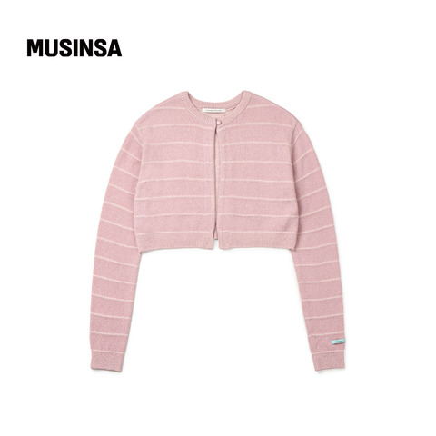 女士春季甜辣风设计感条纹短开衫
