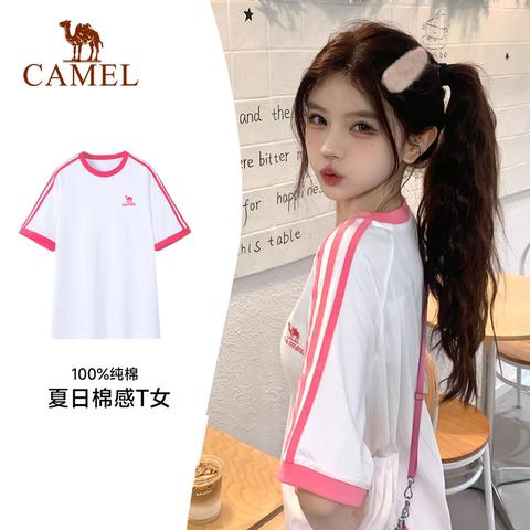 骆驼纯棉T恤女春夏季短袖圆领情侣新款复古宽松运动休闲上衣男