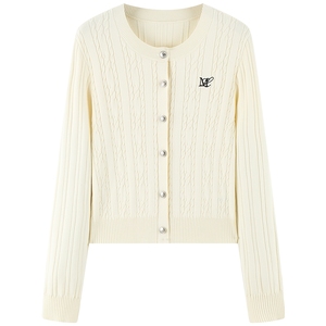 太平鸟 miu圆领绞花针织开衫女士秋品质软糯格雷系针织毛衫外套*