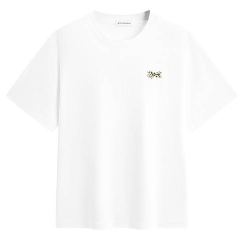 太平鸟男装花卉刺绣短袖T恤2026夏新款通勤体恤衫圆领重磅白t青年